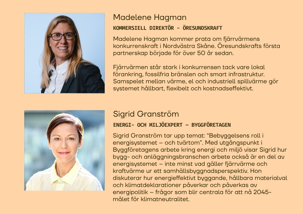 Vi kommer få höra mer om nya regeringsuppdrag och stöd kopplade till sektorn samt om de ökade priserna för fjärrvärmen de senaste åren och få kundperspektiv på detta.